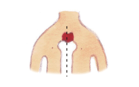 手術によって胸骨を縦に切り開き、その下にある胸腺をまわりの脂肪といっしょに取る方法です。
