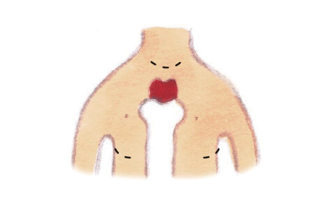内視鏡(胸腔鏡)を使用し、胸骨を切らずに胸腺を摘除する方法です。